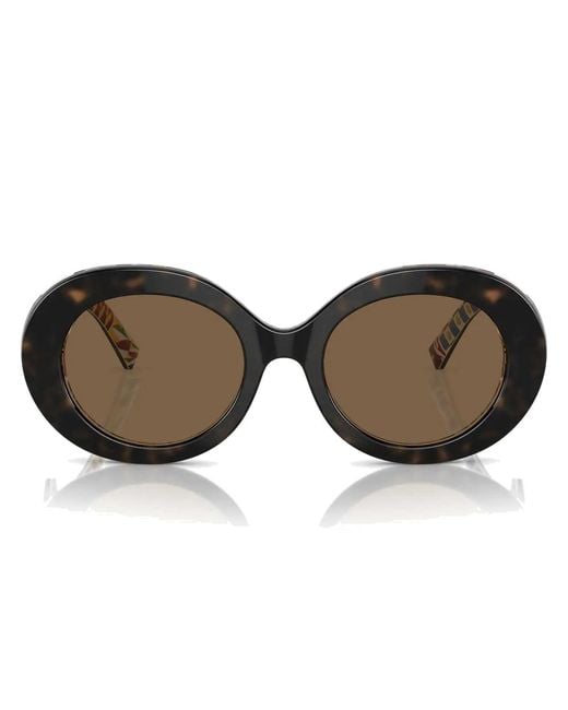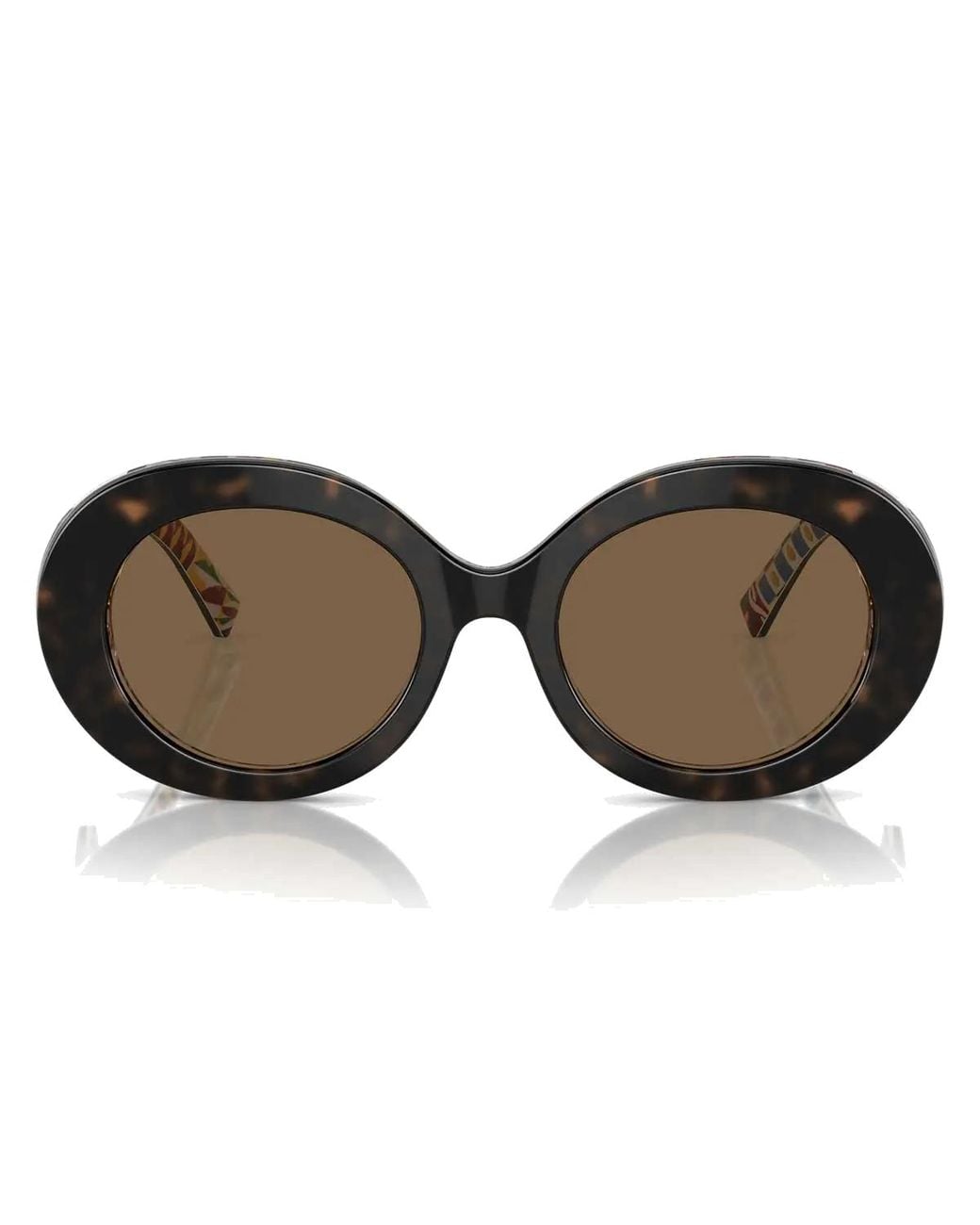 Dolce&Gabbana Women's Sunglasses DG4448 321773, acetate model in Havana with an oval design, featuring thick arms and the unmistakable oversized metal DG Crossed logo. The inside of the frame is characterized by the famous Dolce&Gabbana Maiolica pattern that enhances the model. Designed to be noticed, these sunglasses express the full boldness of the Dolce&Gabbana style. Colour: brown