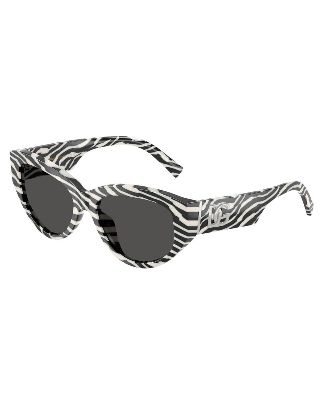 Dolce & Gabbana Cat-eye Sunglasses combine bold, retro-inspired styling with practical sun protection. The zebra-pattern acetate frame and dark grey lenses create a statement look suited for everyday wear. Key attributes: Multicolour | Multicolore | Acetate | Uv 400 protection | Dark grey lenses for reduced glare | Includes original case and accessories | Compatible with prescription lenses | Cat-eye silhouette | Zebra acetate frame | Shiny finish | Prominent brow line | Dimensions & fit: Lens width: 55 mm | Bridge width: 17 mm | Temple length: 145 mm | Lens height: 44 mm | Universal fit | Composition & care: Acetate (frame) | Polyamide/nylon (lenses) | Wipe lenses with a microfiber cloth and mild lens cleaner; store in the supplied case; avoid abrasive cleaners and high heat. Colour: metallic
