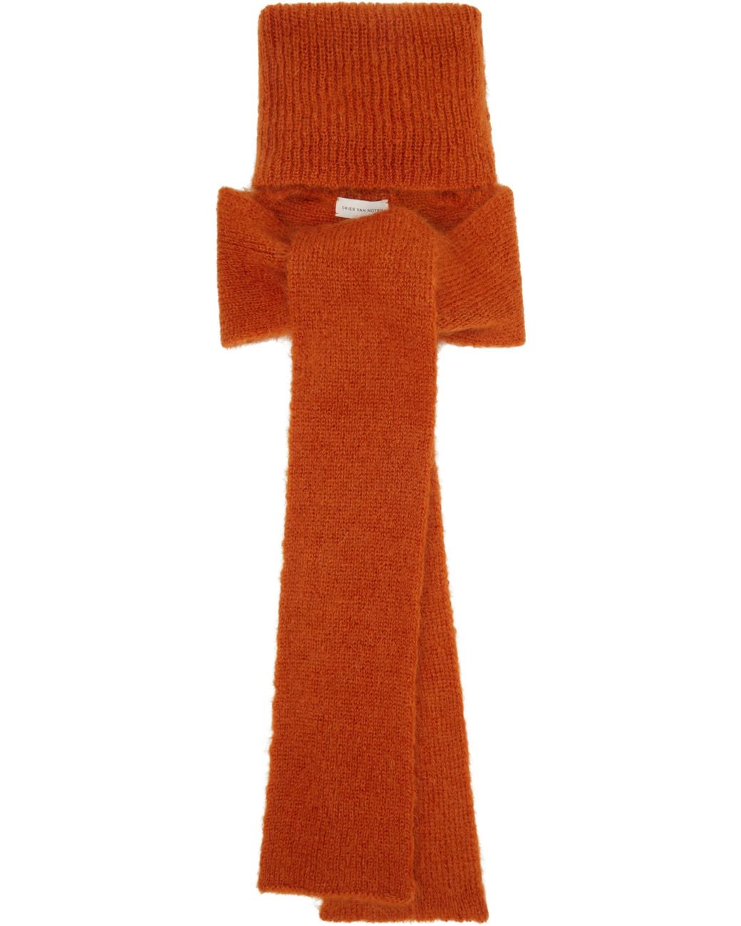 Rectangular knit mohair-blend scarf. · Integrated turtleneck at length · L86 x W6 Supplier color: Light rust Colour: orange