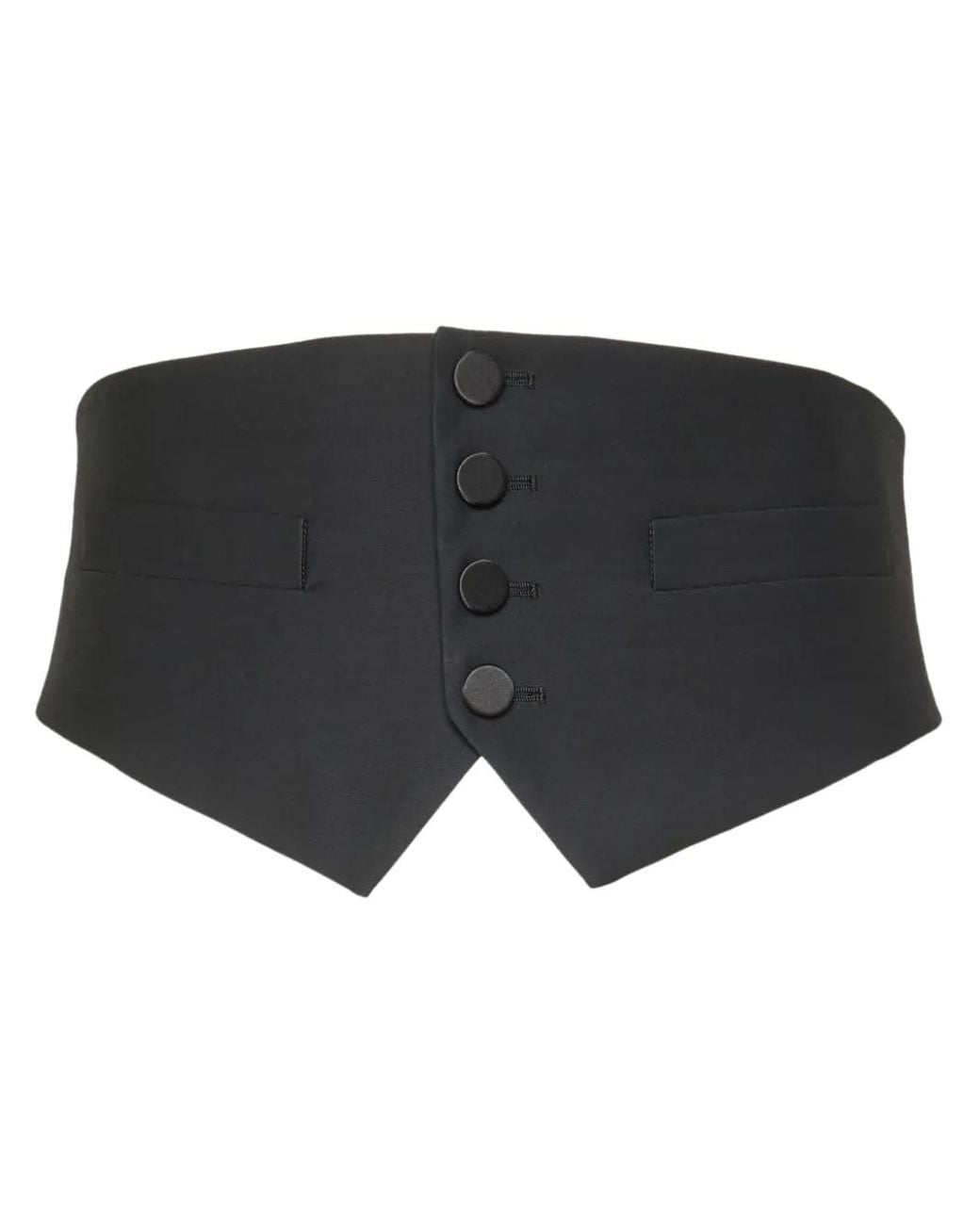 Black front button fastening two front welt pockets adjustable fit Size: 48. Gender: Male. Material:Virgin Wool/Silk. Colour: black