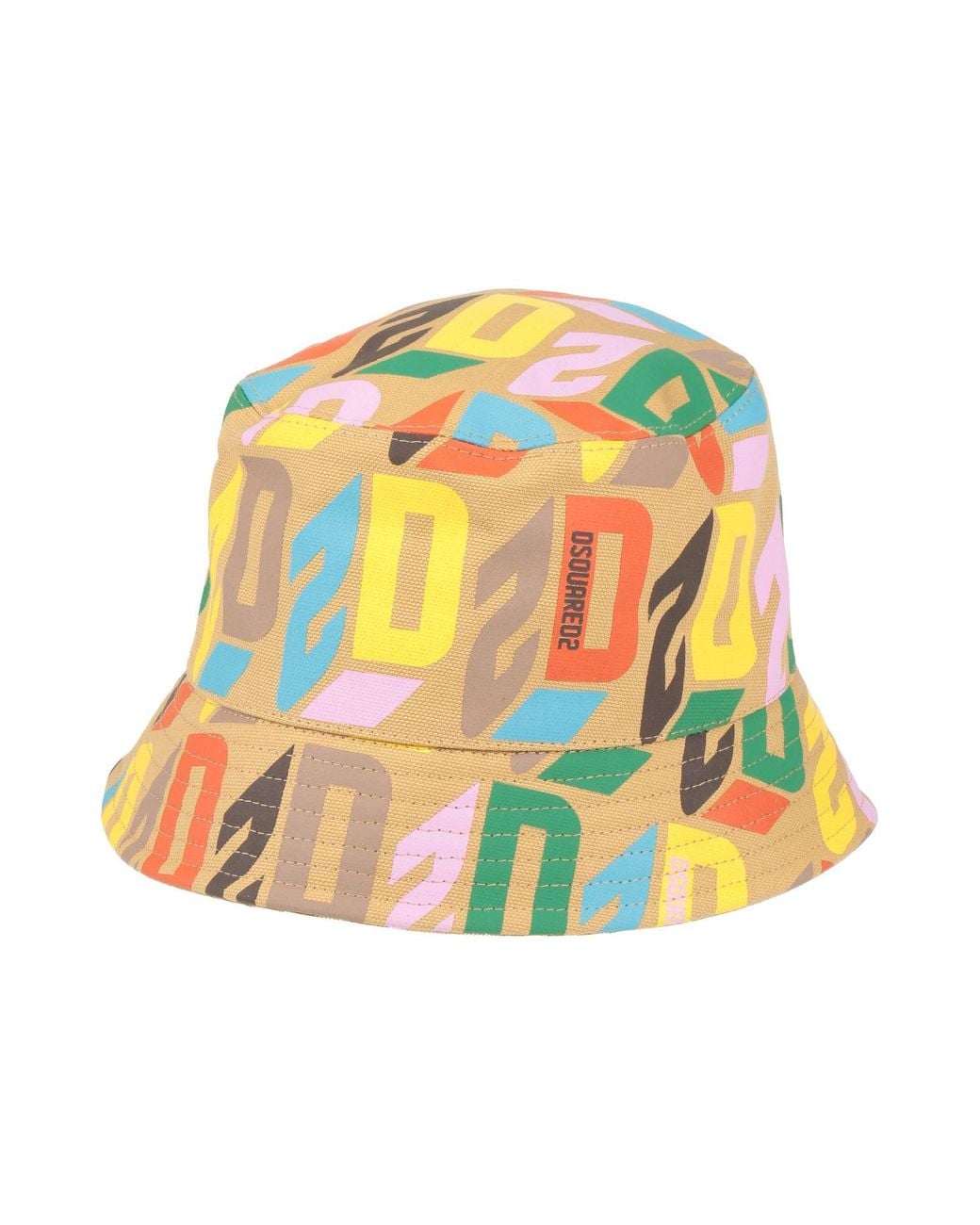 DSQUARED2. bucket hat, canvas, logo-print, print, medium brim, fully lined, do not wash, do not bleach, do not tumble dry, do not iron. 100% Cotton. Colour: natural