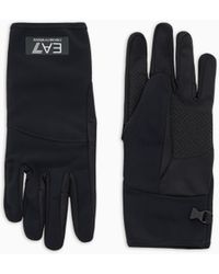 Go to EA7Technical ski gloves made of technical fabric embellished with the EA7 logo and contrasting event logo on the back. The style features numerous inserts on the palm and back that protect against impact.