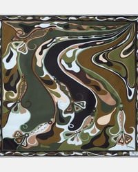 Go to MiintoPucci pink silk foulard. Crafted from pink, beige and black pure silk, featuring an all-over signature manuba print, a logo at the edge, and a triangle shape.SpecificationValueSeasonSS26CompositionSILK | 100%SILKColorMULTICOLOURColor Code1Made InITALYISOITDepartmentWomenSectionACCESSORIESSubsectionFOULARDS & SCARFSSize