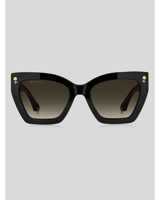 Evolving ETRO's "Colour Stripes" story for the new season, these sunglasses are designed to be seen. The bold acetate frame is bevelled around the front for lightness and paired with geometric temples in a sheer ombré palette that allows the graphic metal wirecore to peek through. Notice the floral details inspired by intricate embroidery techniques, the famous ETRO logo and the signature temple tips. The colour palette blends classic tones with intriguing transparencies to striking effect. Colour: brown