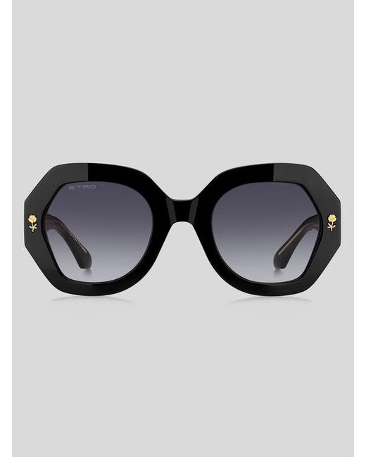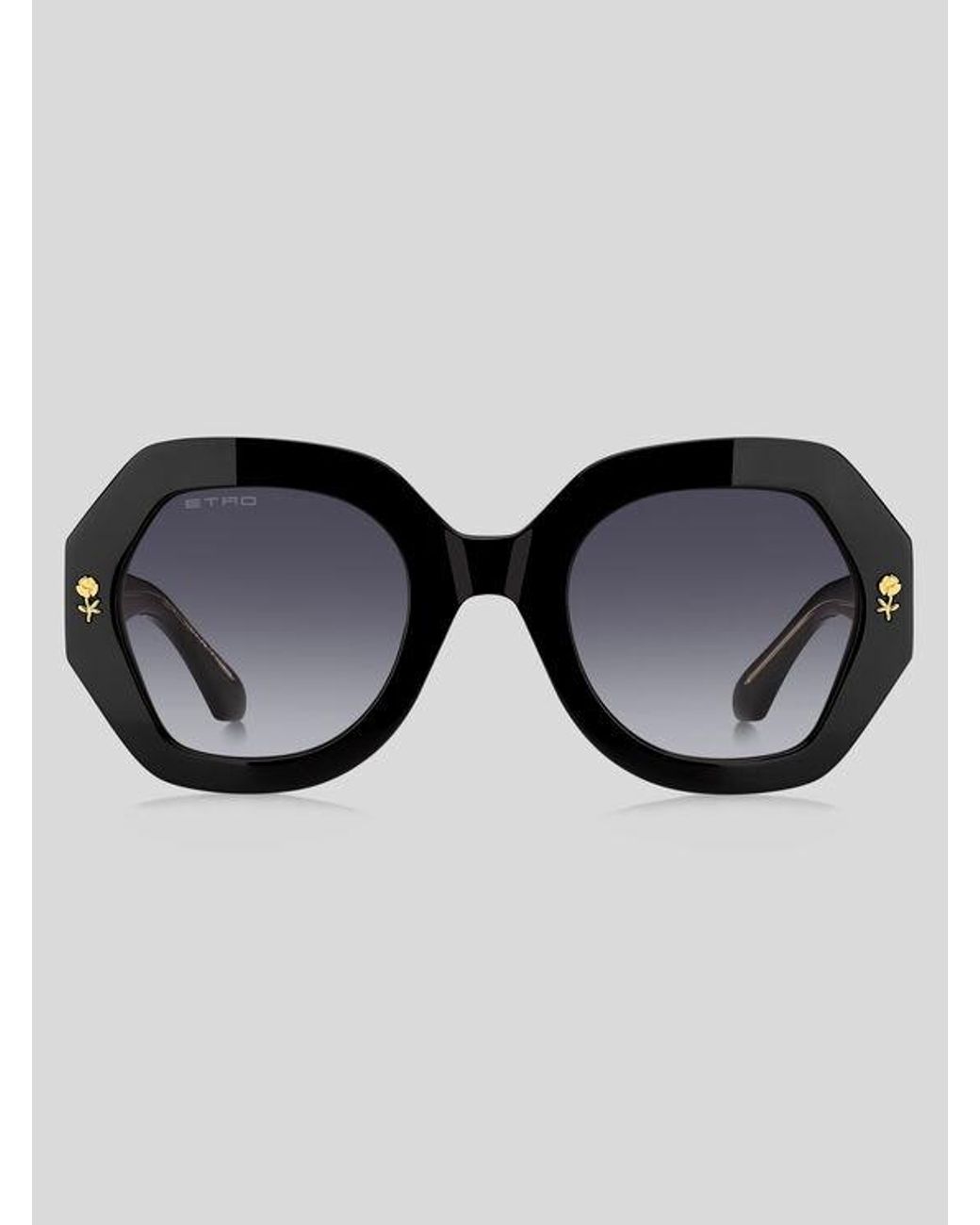 A tribute to the stripes and floral motifs that have become synonymous with ETRO's eclectic aesthetic, the "Colour Stripes" eyewear collection translates the Maison's iconic embroideries and prints into innovative sunglasses. The bold acetate frame with beveled profiles is detailed with a precious metal flower trim and a multicolour striped insert on the sides, while a wirecore visible through transparent temples adds a graphic touch. Lasered ETRO lettering on the lens and iconic acetate end tip Colour: multicolour