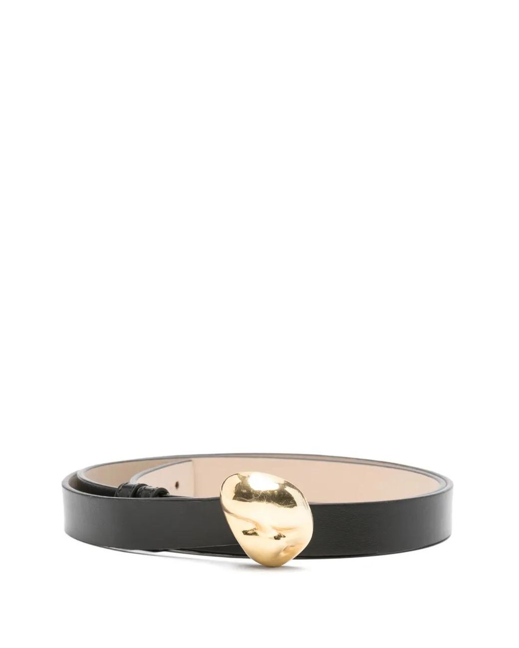 Elegant Dark Leather Belt With Vintage Buckle - Black