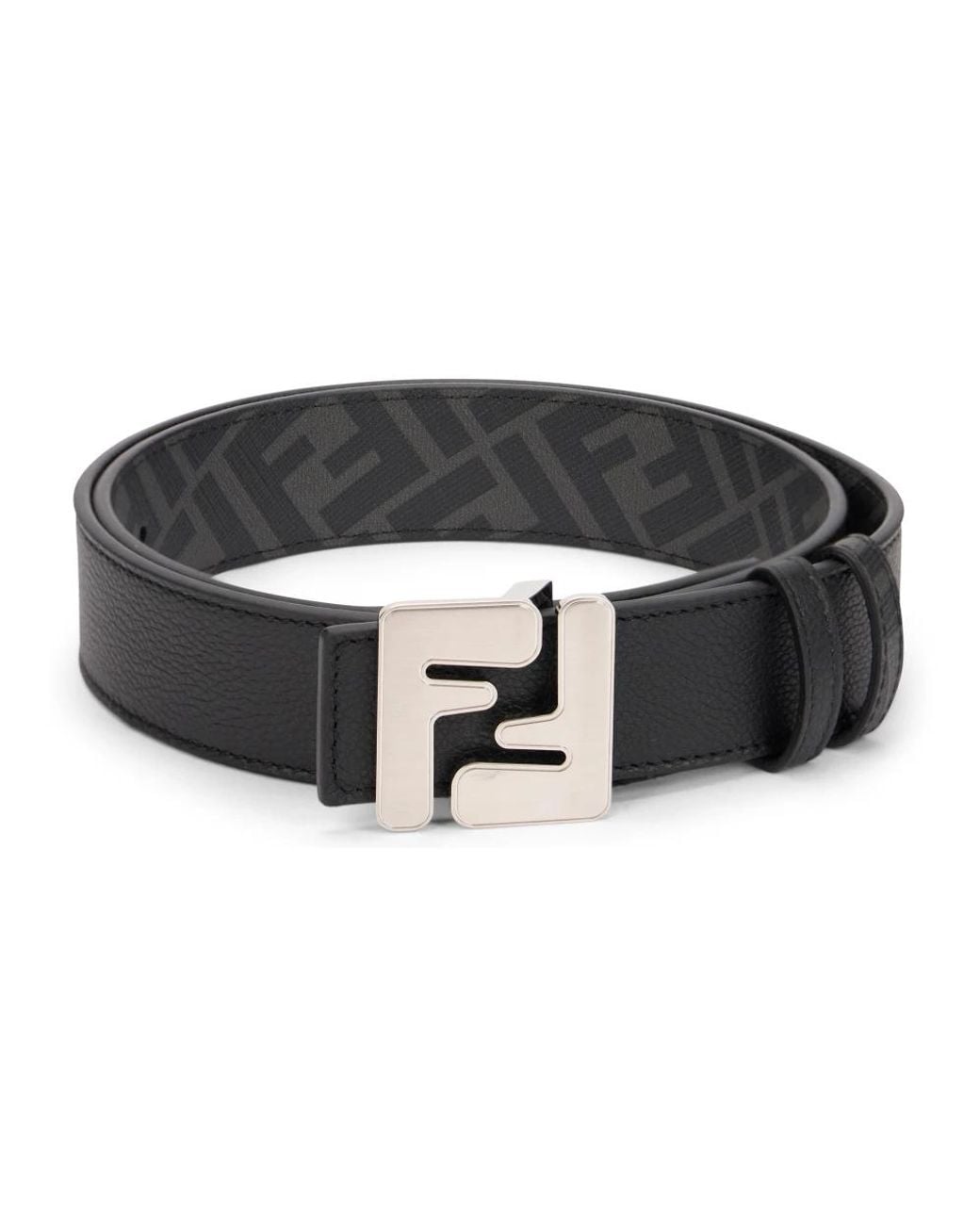 Ff Squared Leather And Canvas Reversible Belt Accessories - Black
