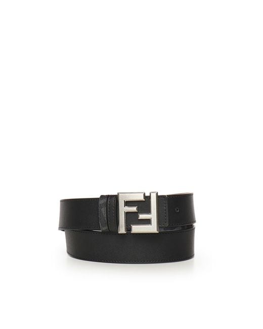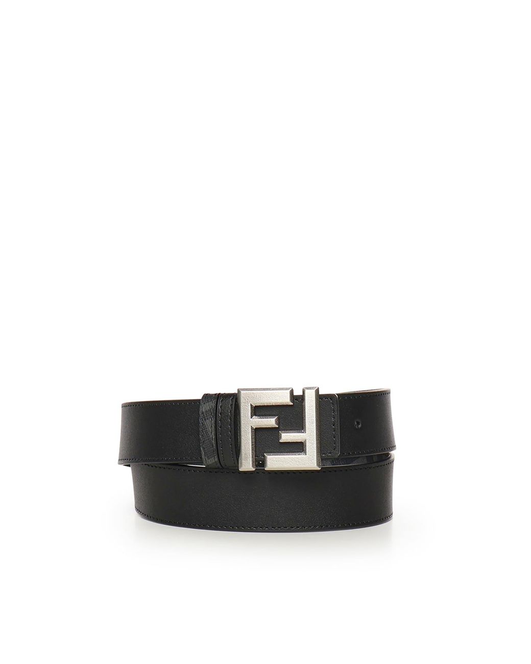 Reversible Belt With Thin Squared Ff Buckle - Black