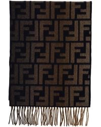 Fendi Men's Brown Logo Ff Scarf Soft Texture Fringe
