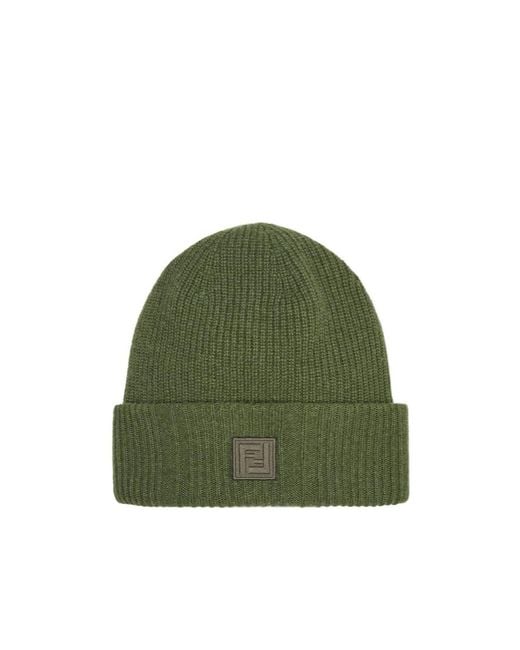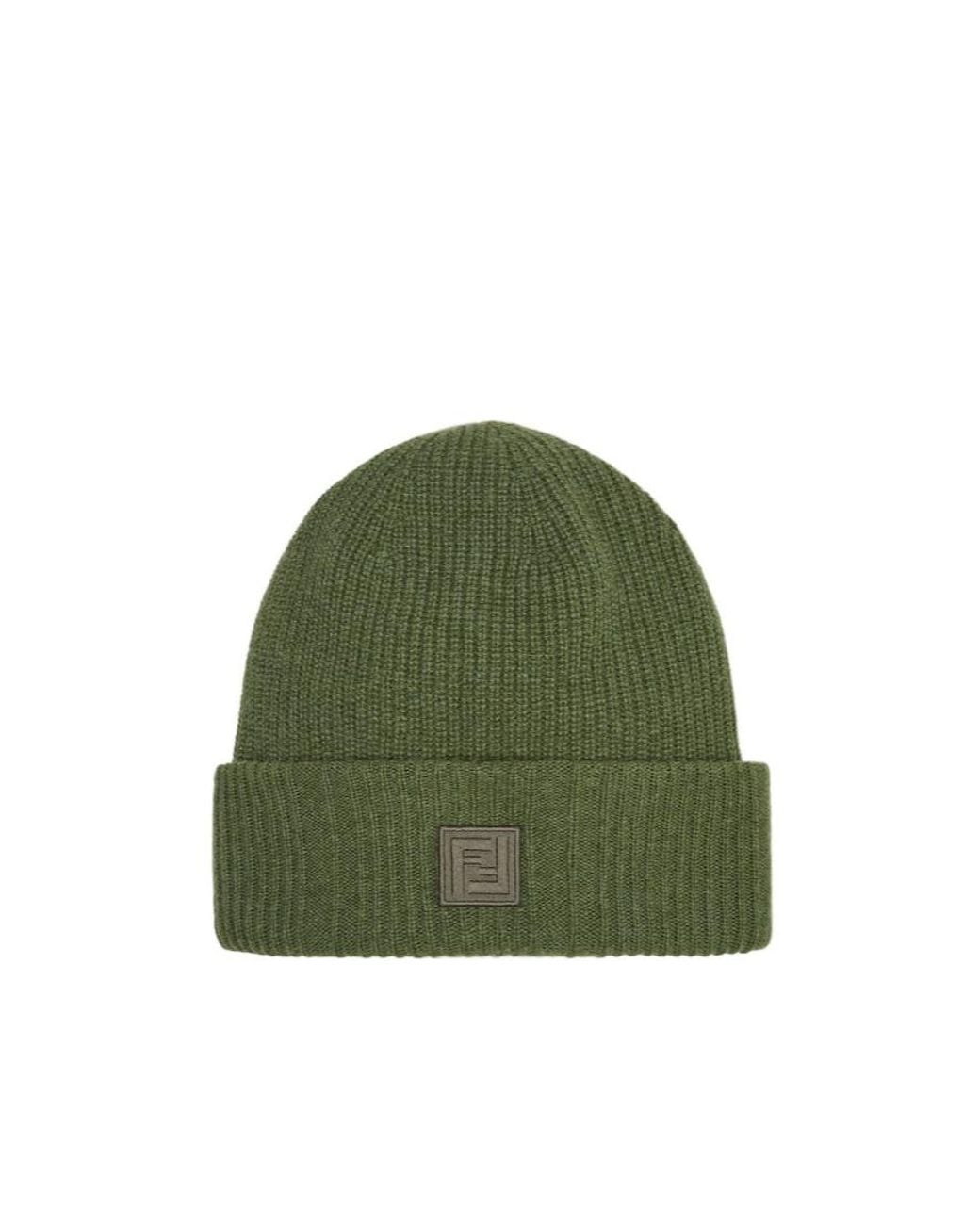 Men's Green Logo Patch Ribbed Beanie