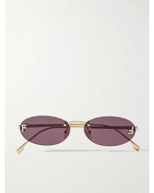 Women's Purple Rimless Oval-Frame Crystal-Embellished-Tone Sunglasses