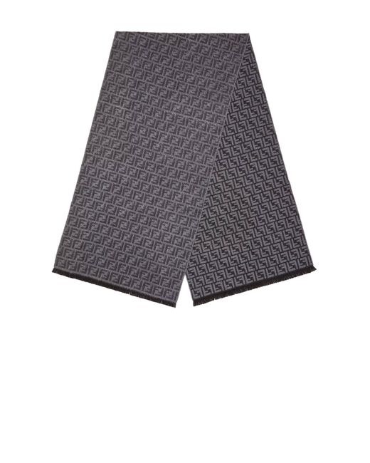 Ff Jacquard Fringed-Edge Scarf - Grey