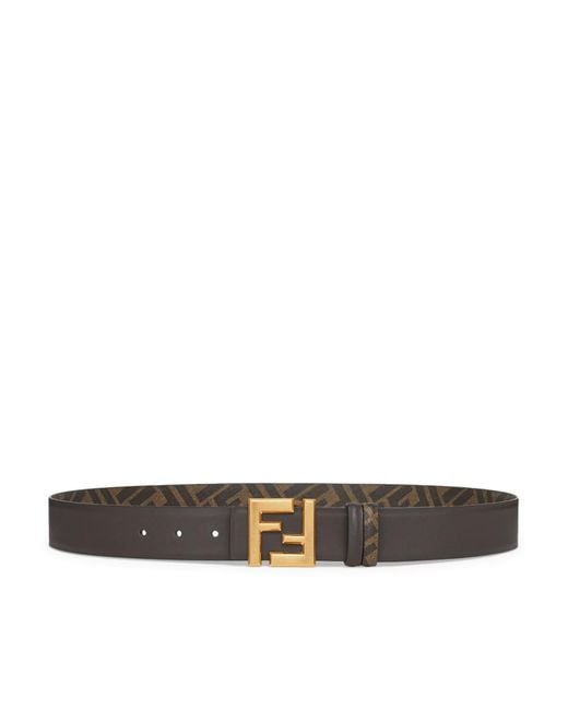 -Reversible belt with thin Squared FF buckle -Made of smooth black matte leather -Interior in brown FF canvas -Satin gold finish metal accessories -Black/BrownComposition: Calf Leather | 100% Calf leather