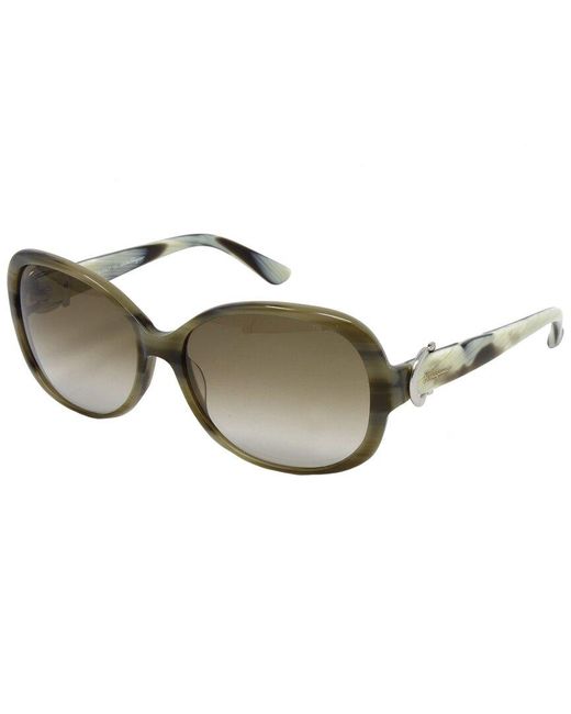 About the brand: The Gancini, The Vara, and all the icons in-between. Frame shape: round Frame color: green horn Lens color: green gradient These frames flatter those with an oval, diamond, square, triangle or oblong shaped face Plastic lenses with 100% UV protection Logo at arm Lens: 59mm wide Bridge: 16mm wide Arms: 135mm long Case included; case size and color may vary Made in Italy Model #: SF613S-337 Our products are 100% genuine. In some cases we purchase merchandise from trusted independent suppliers and not directly from the brand owner. In all cases we stand by the authenticity of every product sold on our site.