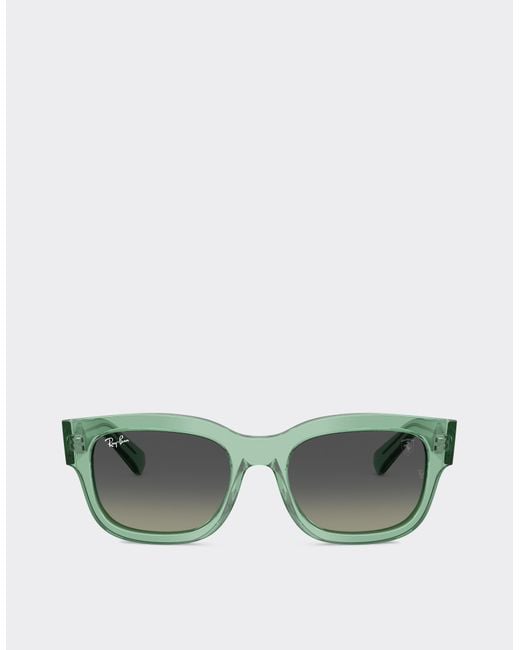 These Ray-Ban for Scuderia Ferrari sunglasses combine contemporary elegance and timeless style in a bold design with a strong aesthetic impact. The square-shaped frame is made of acetate and is fitted with crystal lenses featuring the Ferrari Shield and the Ray-Ban logo. The iconic Ferrari Shield also stands out on the boldly shaped temple. A perfect model for any occasion, designed for those in search of a distinctive look full of character. The accessory comes with a box containing a customised case and microfibre cloth. Colour: green