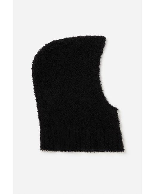 Fluffy balaclava hat in a heavyweight certified wool blend. Wear it in the winter with a tailored coat for added warmth. Colour: black