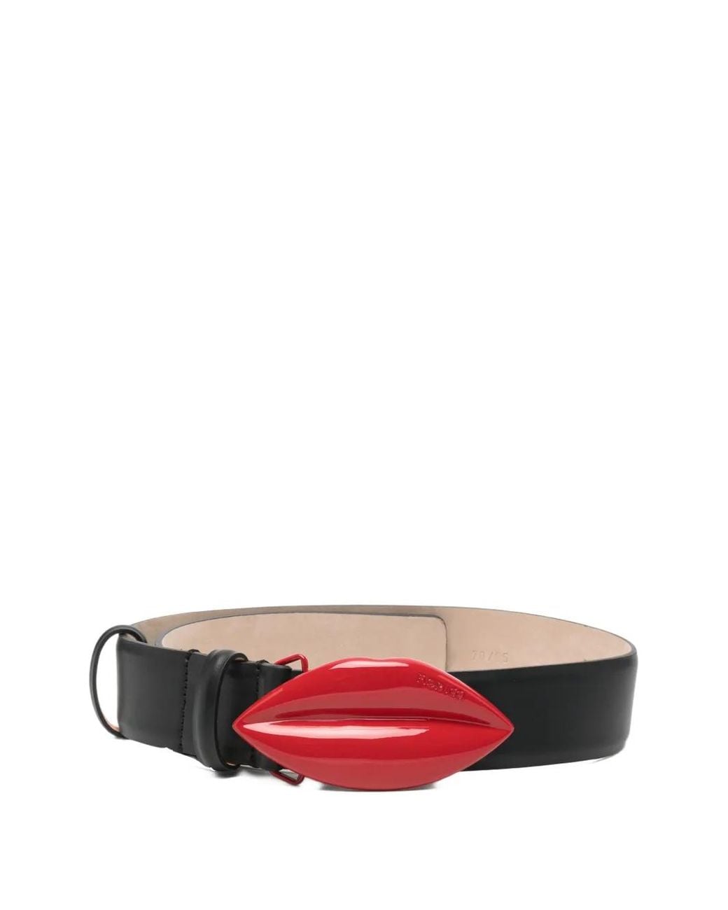 Black smooth leather lips-shaped buckle debossed logo adjustable fit punch-hole detailing tonal belt loops This piece comes complete with a protective dust bag. Size: One Size. Gender: Female. Material:Calf Leather. Colour: white