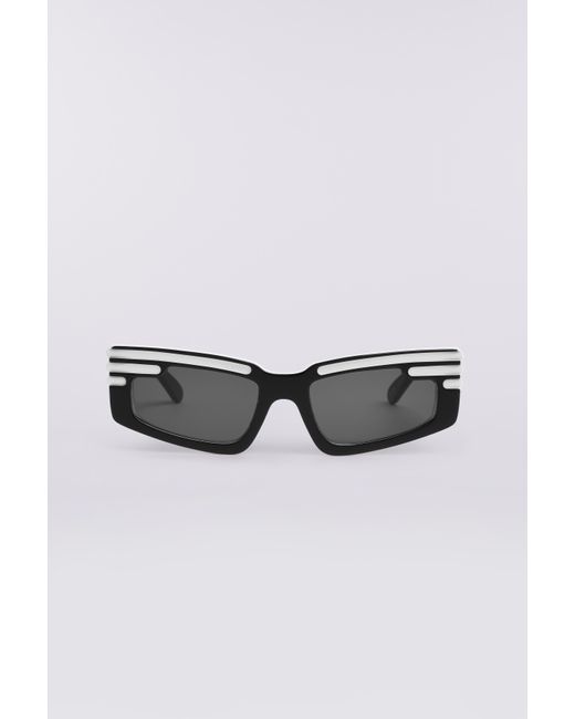 Rectangular Wing Sunglasses in black, resembling angel wings. The sunglasses are in a rectangular shape in a regular size, with a lettering detail on the inside. Made in Italy. Colour: multicolour