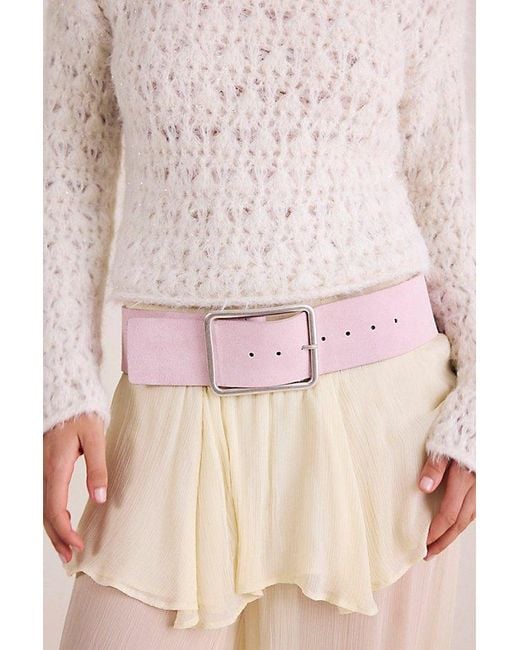 Add the perfect touch of effortless edge to your accessories collection with this head-turning hip belt featured in a stunning suede fabrication with defined stud detailing throughout for a little something extra. **Suede Note:** Derived from natural sources, the material used in each design is prone to variations in colour and texture, resulting in a distinct, one-of-a-kind look and intentional aged aesthetic. To keep this delicate-yet-durable material in tip-top shape, we encourage regular brus Colour: pink