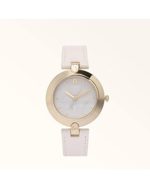 Women's White Logo Links Round Case Watch Panna Leather + Metal