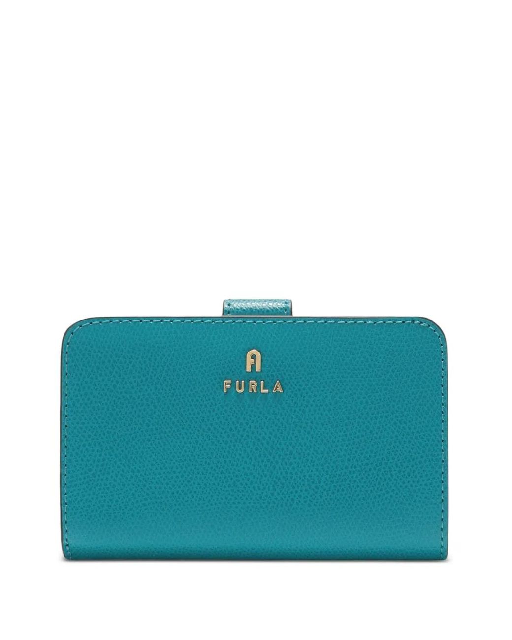 Women's Blue Medium Camelia Logo-Detail Compact Wallet