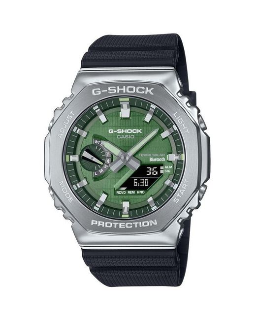 G Shock's Digital Watch balances durability with metallic design. The Metal Covered 2100 integrates Bluetooth connectivity with advanced solar power, all wrapped in a phosphorescent face offering enhanced readability in any light. This tough electronic timepiece delivers multifunction capabilities for the modern user. Product Highlights: • Resistant design ensuring lasting performance • Dual illumination for clear visibility • Connected technology with world time settings Colour: green