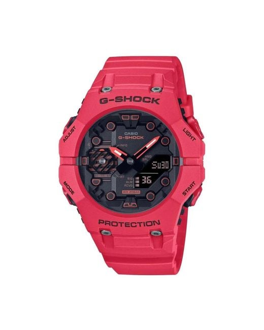The Casio Red Resin Watch is designed for men who appreciate a blend of style and functionality. Featuring a durable carbon case in black, this timepiece offers both analog and digital display options. The striking red resin bracelet adds a pop of colour, while the black dial and mineral glass provide a sleek and sturdy finish. With water resistance up to 20Atm, this watch is perfect for both everyday wear and adventurous activities. It includes special functions such as G Shock-Carbon Core Guard, Smartphone Link, Chronometer, Alarm, Timer, Automatic Time Adjustment, and a Telephone Search Engine. Colour: pink