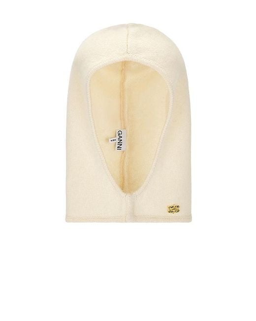 Ganni Yak Mix Balaclava in Cream. Ganni Yak Mix Balaclava in Cream. 50% wool 50% yak. Hand wash. Pull-on styling. Gold-tone logo hardware detailing. Lightweight knit fabric. GANR-WA155. A7205. Founded in 2000, the Ganni brand aims to design effortless staples for a woman's wardrobe that she's tempted to reach for day in and day out. By doing this, they create quality fashion that can be worn in many different ways to suit any personal style. Colour: natural