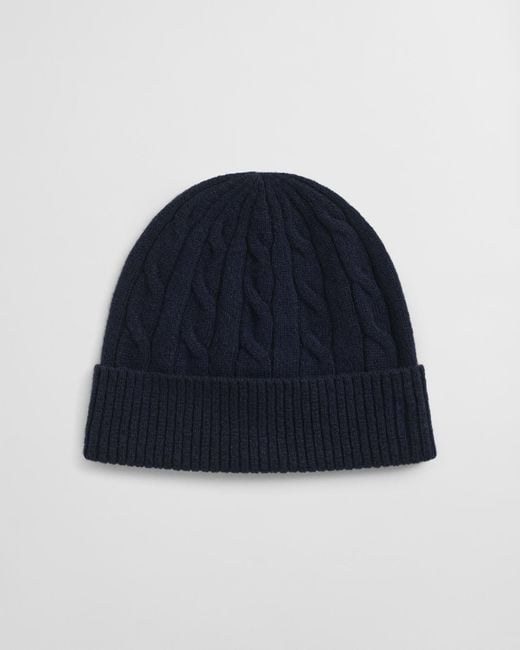 Cut from 100% wool and designed in a cable knit structure, this beanie is a season essential. Made for a regular fit, it features a ribbed fold-up and our signature tonal GANT logo embroidered on the front corner. Colour: blue