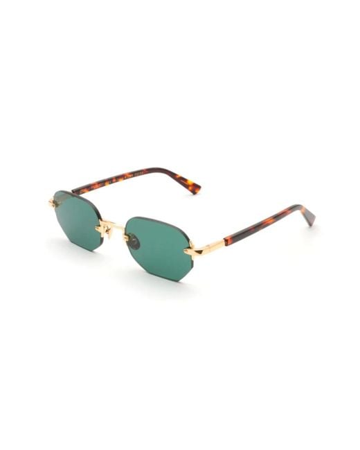 Gast Moonstone Rimless Sunglasses combine a minimalist rimless frame with UV-protective nylon lenses for everyday sun protection and a refined look. Handmade details and acetate temple end-tips add a polished finish. Key attributes: Yellow | Gold | Stainless steel | 100% Uva/Uvb protection | Anti-reflective inner coating | 3 mm nylon lenses | Includes premium hard case and microfiber cleaning cloth | Rimless silhouette | Oval lenses | Acetate temple end-tips | Handmade construction | Dimensions & fit: Front width 143 mm | Front height 39 mm | Lens width 51 mm | Lens height 39 mm | Temples length 145 mm | Bridge 22 mm | Composition & care: Stainless steel | Acetate | Nylon | Wipe lenses with the provided microfiber cloth and store in the supplied hard case.