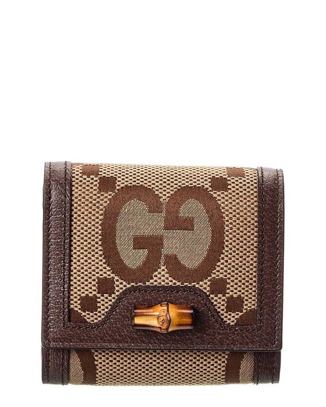 Women's Brown Bamboo Jumbo Gg Canvas & Leather Card Case