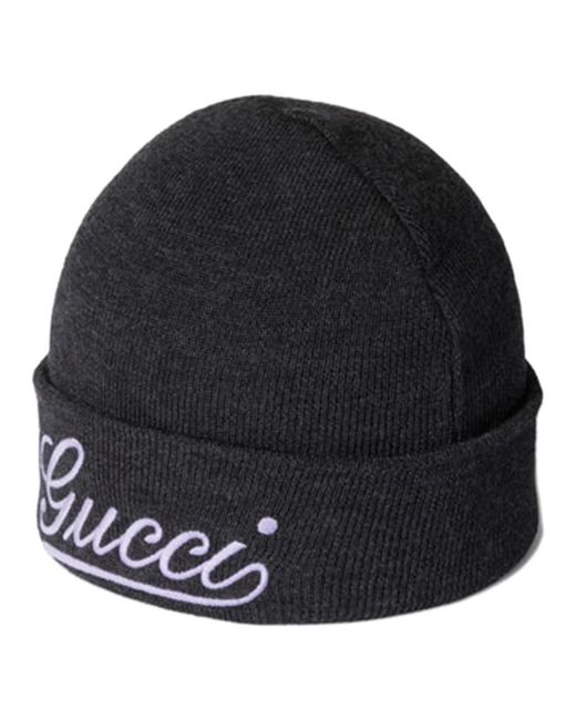 Gucci Logo Beanie pairs a ribbed knit construction with an embroidered logo for refined everyday warmth. The wool design offers a comfortable, slip-on fit suited to casual and layered looks. Key attributes: Grey | Wool | Insulating | Folded cuff | Slip-on styling | Ribbed knit | Embroidered logo | Dimensions & fit: True to size fit | Composition & care: 100% wool | Dry clean only