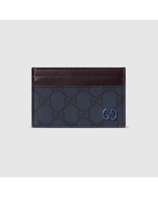 Men's Blue Bordeaux Trim Gg Card Case, Gg Canvas