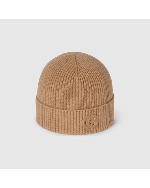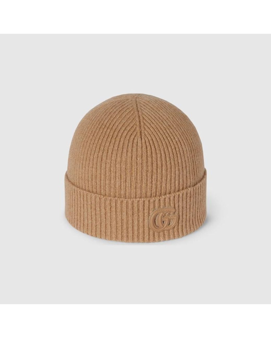 The soft and silk accessories' collection animate House codes through sophisticated trimmings, logo patches and subtle embroideries. This cashmere hat reveals a tonal Double G leather patch. Beige cashmere, Double G leather patch, Made in Italy Colour: natural