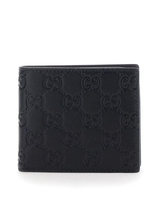 Men's Black 'Emblem' Bi-Fold Wallet With Embossed Gg Motif