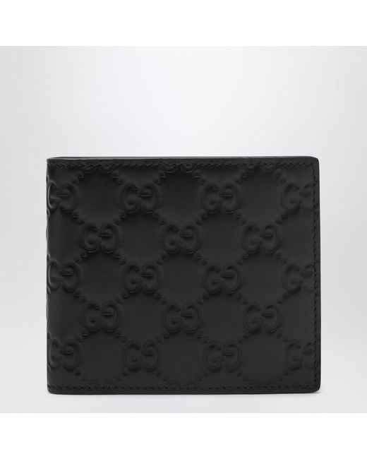 Men's Black Gg Emblem Bi-Fold Wallet With Coin Pocket