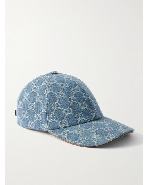 - Horsebit-Detailed Leather-Trimmed Denim Baseball Cap
