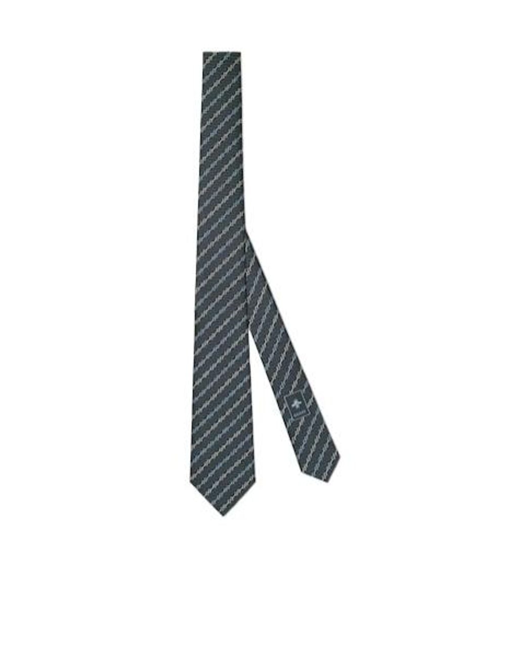 Diagonal Horsebit Silk Jacquard Tie - Brown