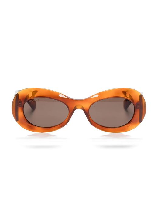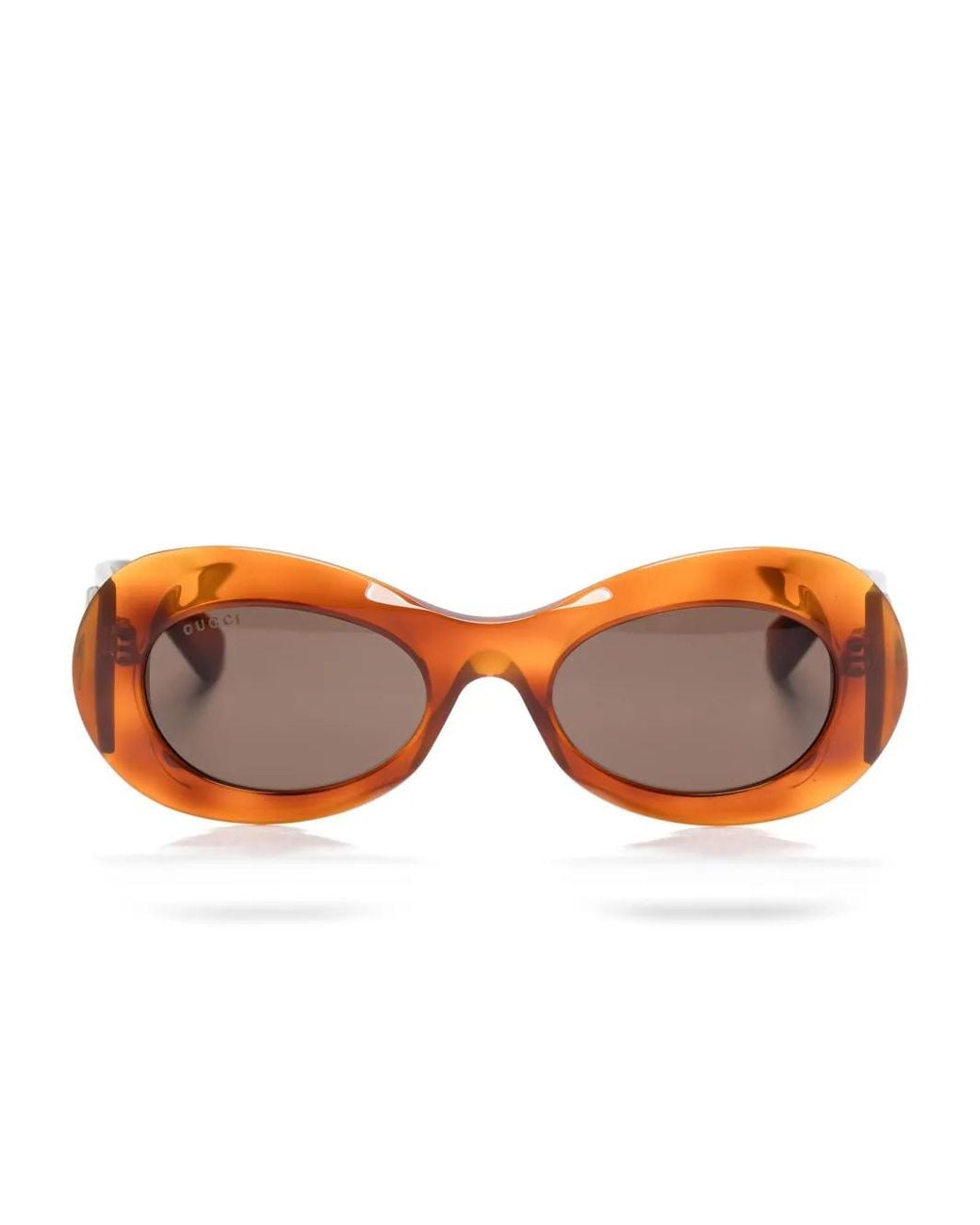 Rust brown acetate transparent design oval frame tinted lenses UV-protective lenses lens decal signature Interlocking G logo oversize arms curved tips These glasses come with a protective case. Size: 51. Gender: Female. Material:Acetate. Colour: brown