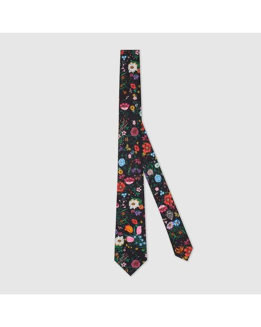 Introducing Spring Summer 2026. Silk and soft accessories designs continue to reinterpret emblematic codes through a creative lens in the La Famiglia collection, such as new ties with the Flora motif. This tie is stated in silk with an allover Gucci Flora print. Multicolour silk, Allover Gucci Flora print, Gucci crest label, W7cm x L148cm, Main fabric: cotton 55%, silk 45%, Lining: cupro 60%, silk 40%, Made in Italy Colour: black