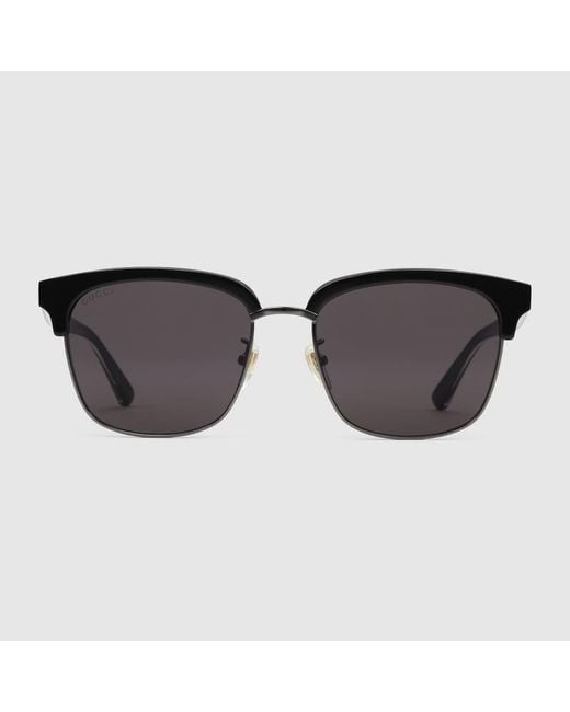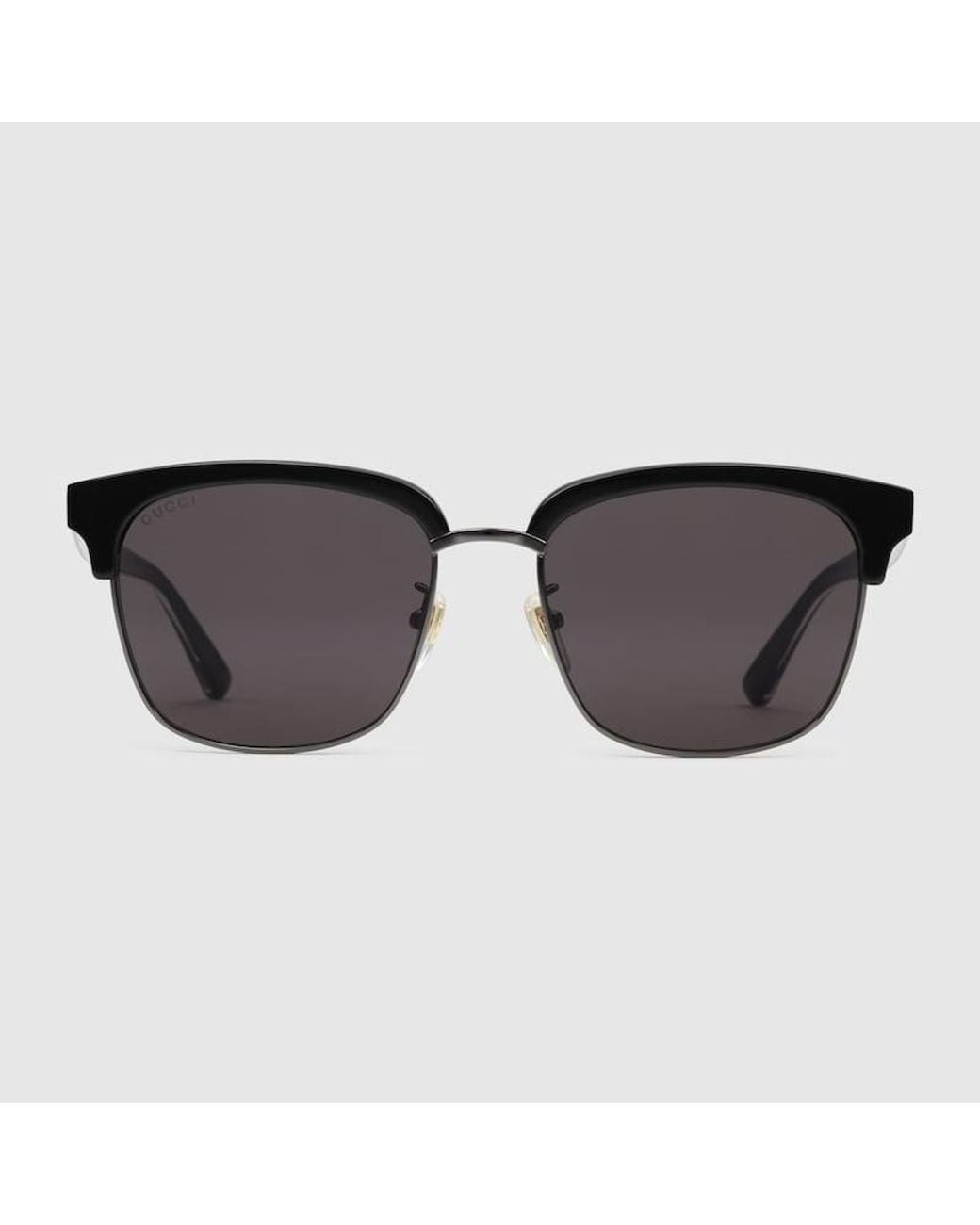 A playful mix of materials, these sunglasses feature a shiny black acetate frame, contrasted by a shiny black ruthenium metal bridge. The temples are decorated with a sophisticated reinterpretation of the Web, crafted from tortoiseshell and mother of pearl effect acetate layers, trimmed by gold-toned metal details. With a vintage inspired soft acetate coating, the metal temple tips add a subtle contrast. Shiny black ruthenium metal and black acetate frame, Black acetate temples with multilayer a Colour: brown
