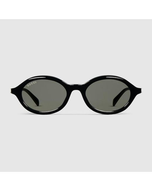 The House's eyewear collection continues to reinterpret emblematic motifs, from the GG, Web, bamboo, Horsebit and equestrian inspirations, in sumptuous materials, intricate craftsmanship, and fresh hues. These round frame sunglasses are presented in black acetate with a Gucci logo across the temples. Shiny black acetate frame, Shiny black acetate temples with Gucci logo, Black lens, 100% UVA/UVB protection, GG2153S, Temple length: 14cm, Lens height: 3.6cm, Nose bridge length: 1.9cm, Frame height Colour: black