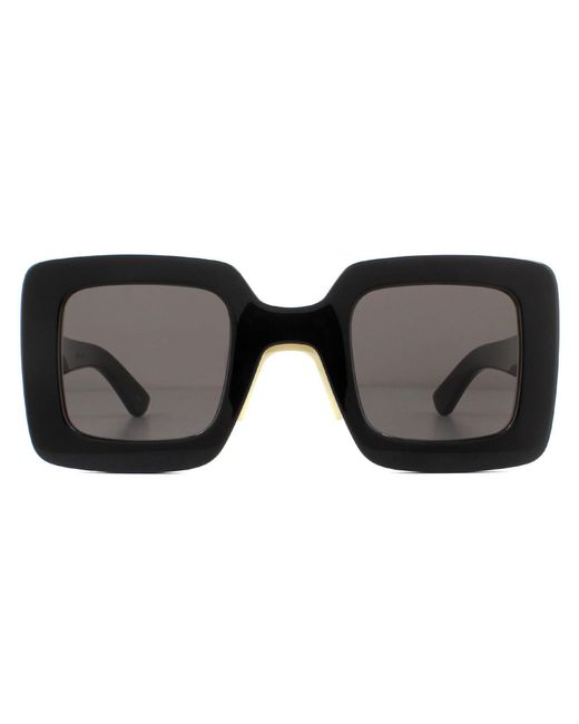 Gucci Sunglasses GG0780S 005 Black Grey have a thick acetate square style frame with adjustable nose pads and the iconic interlocking GG logo on the temples. Colour: black