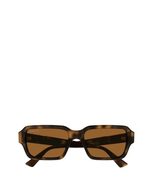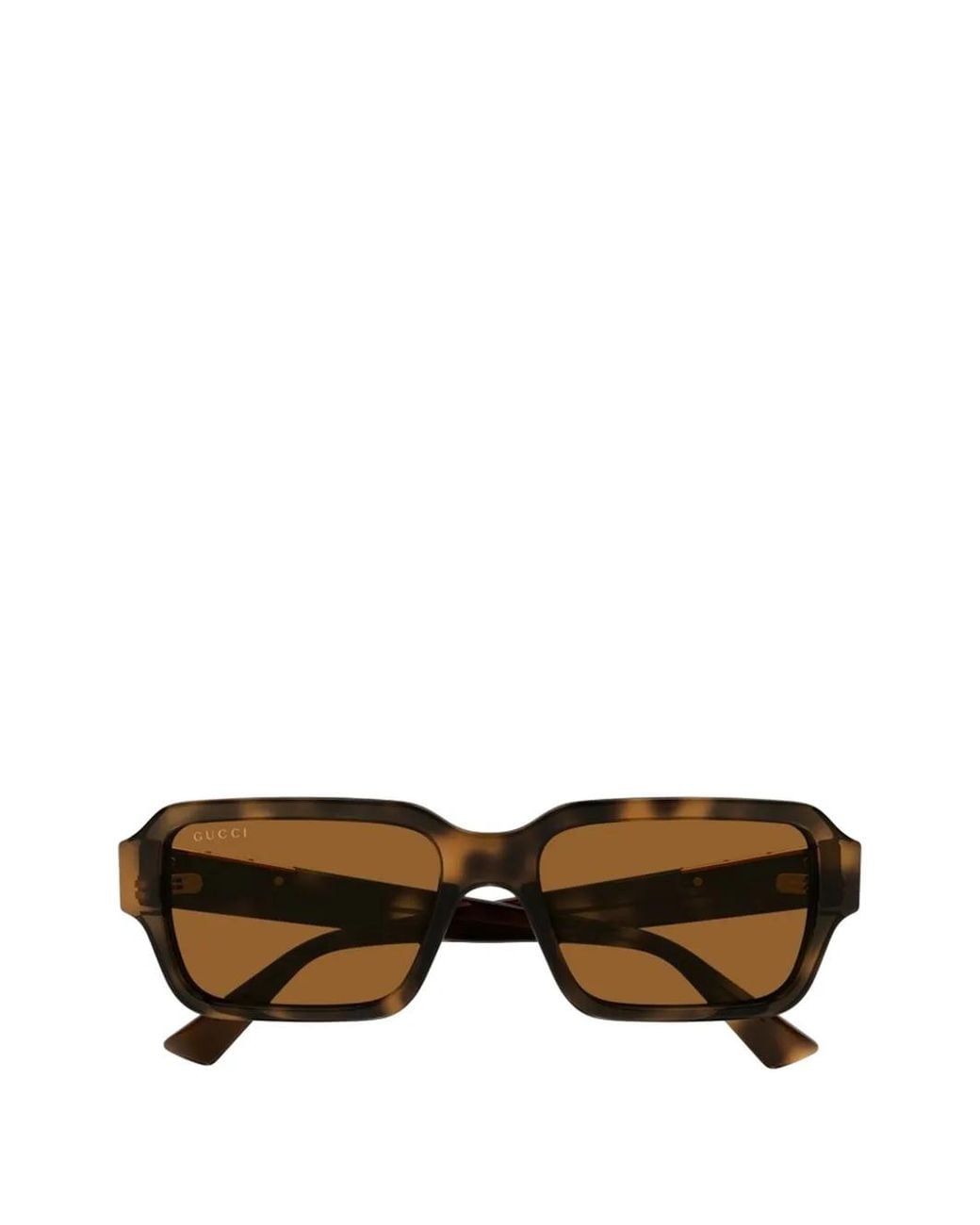 Men's Brown Tortoiseshell-Effect Rectangle-Frame Sunglasses