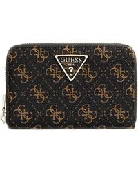 Guess Women's Metallic Laurel Slg Medium Zip Around Wallet Bone Logo