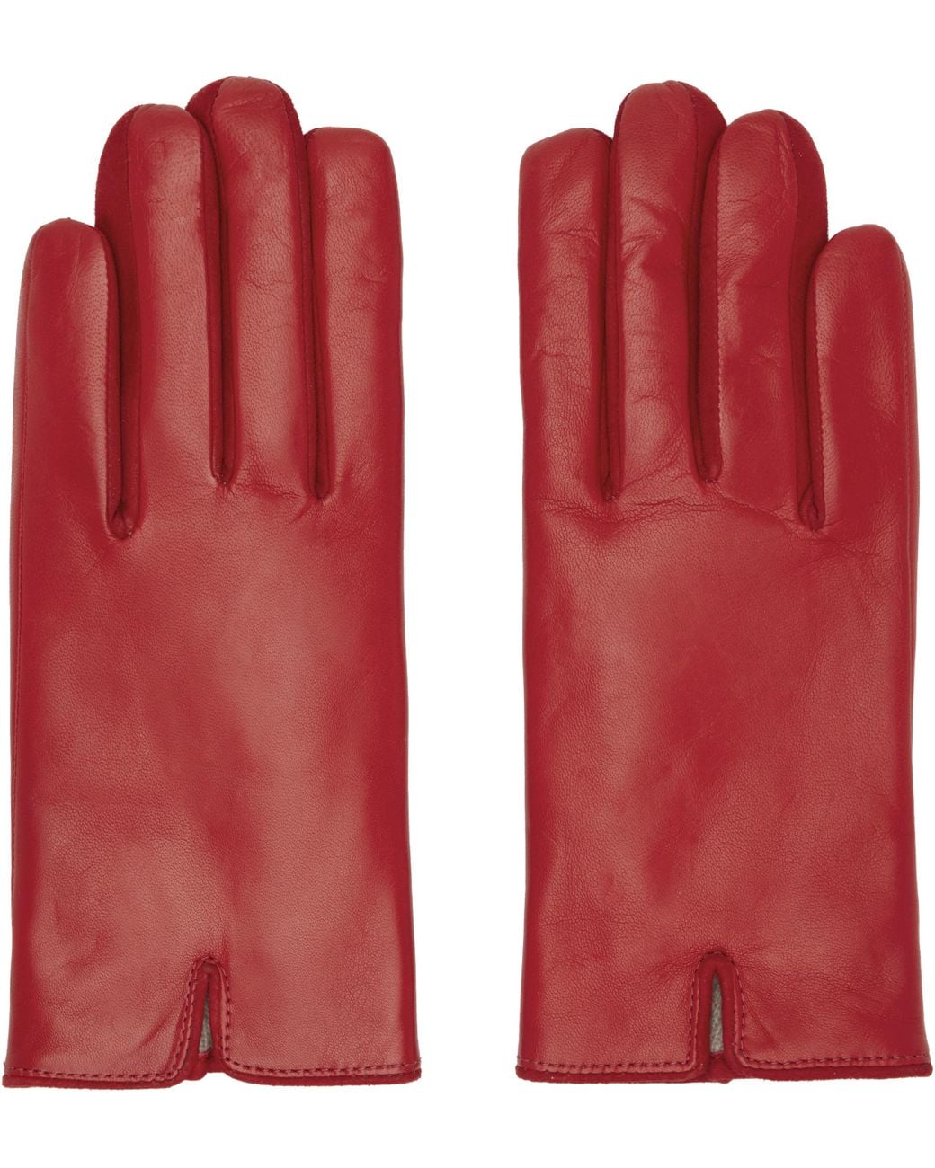 Grained nappa leather gloves. · Suede trim at fingers · Partially elasticized wrist · Notch at top wrist · Embossed logo at back wrist · Full knit cashmere-blend lining Available exclusively at SSENSE. Supplier color: Red Colour: red