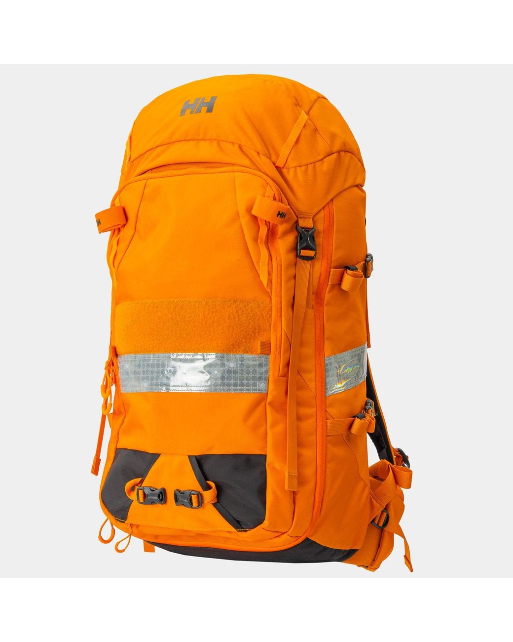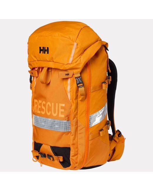 Our Alpine SAR 45 Backpack was made for the Npa, the largest volunteer Search and Rescue organization in Norway. Guided by their feedback and extensive field testing, we’ve created a backpack that meets their demanding standards, and now it's available for your adventures. Constructed with 500D Nylon Oxford Kordura and 400D Nylon SD ripstop fabrics, the pack ensures exceptional resistance to the elements and rugged terrain. The pack features a spindrift collar to protect your gear while allowing overfilling and quick access through a secure top-loading design. The main compartment can also fully open like a suitcase with a J-shaped zipper. The pack includes compartments to help organise everything from a first aid kit to your change of clothes. It’s also equipped to carry avalanche safety tools, hydration bladders, and an ice axe carry system, and it has the option to secure skis in an A-frame configuration. Adjustable, glove-friendly, and equipped with an adjustable frame stay and Solas reflectives for visibility, this pack is ready for you to hit the trails. Colour: orange