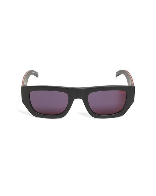 These sunglasses from HUGO feature a rectangular silhouette with a saddle nose. 100% UV protection. Solid lenses. Saddle nose. Plastic. Spot clean 51mm lens width 23mm bridge width 140mm temple length.