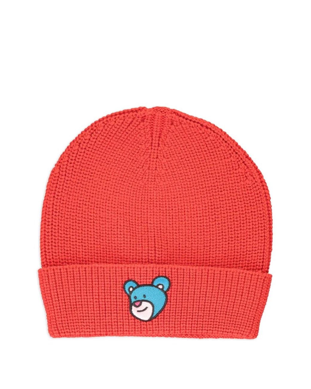 Bright red knitted cuffed brim embroidered logo Size: One Size. Gender: Unisex. Material:Merino/other fibres. Colour: red