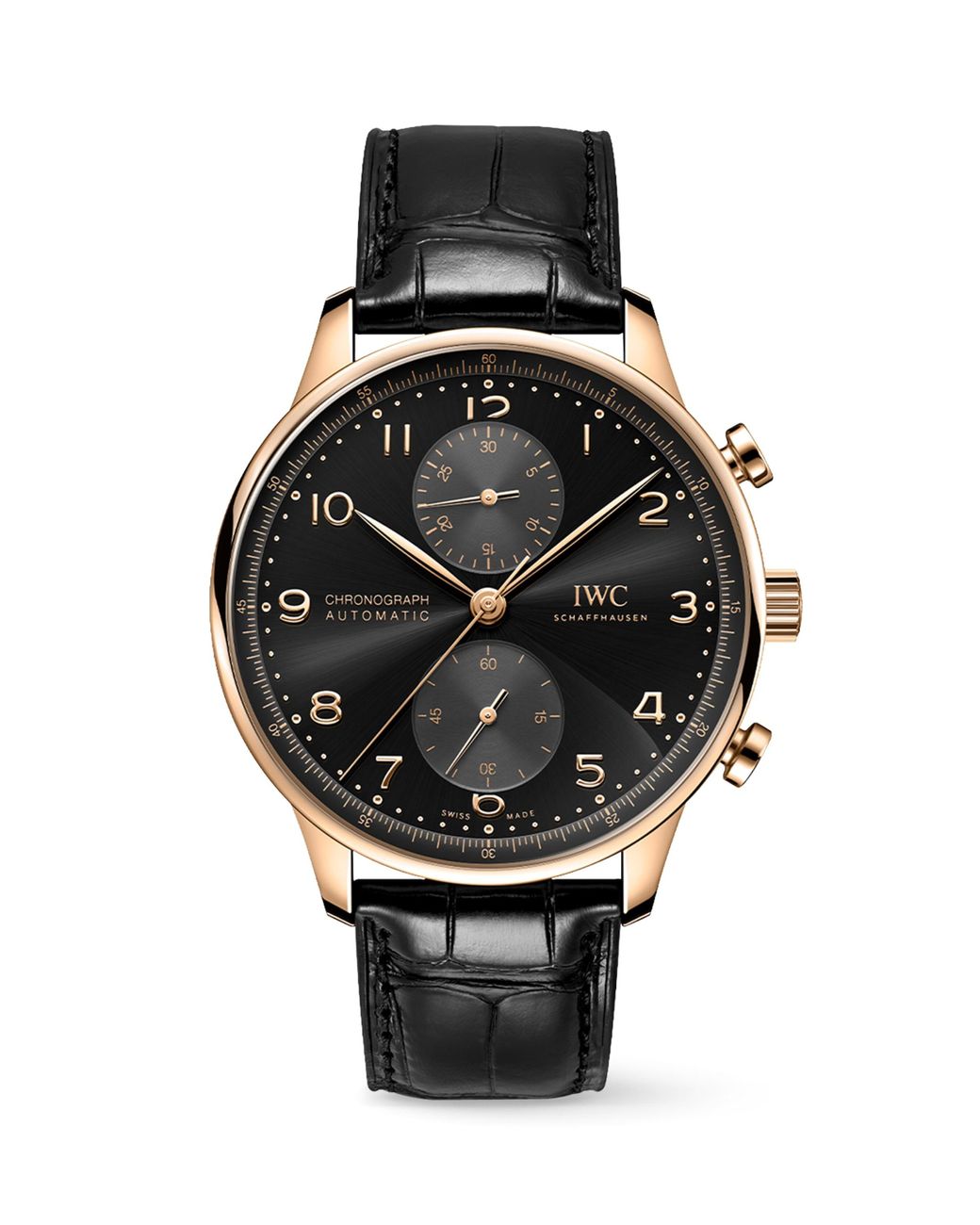 Among the many styles in iwc Schaffhausen's repertoire, the Portugieser Chronograph watch stands out as one of the most iconic. It's a design that has been considered perfect since its inception in the 1990s; simply put, there's no need to edit its elegant, functional dial or slender Feuille hands – features that serve as a reminder of the model's origins as a nautical precision instrument. The size of the case is 41mm to fit most wrists, while the slim bezel gives the impression of wearing a much larger watch. Colour: black